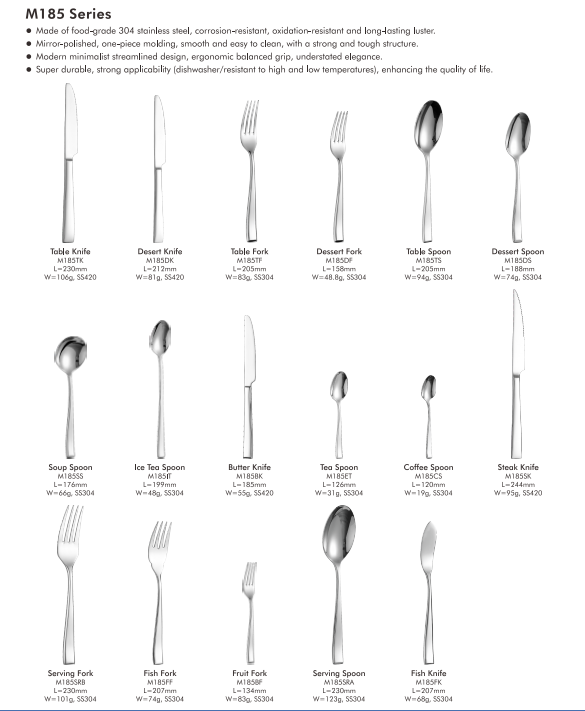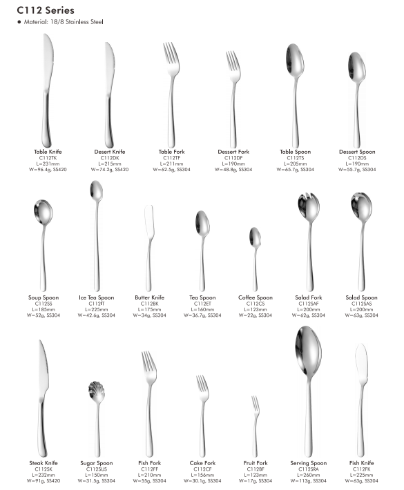 Series C112 perite fabricata est ex ferro immaculato 18/8 qualitas.