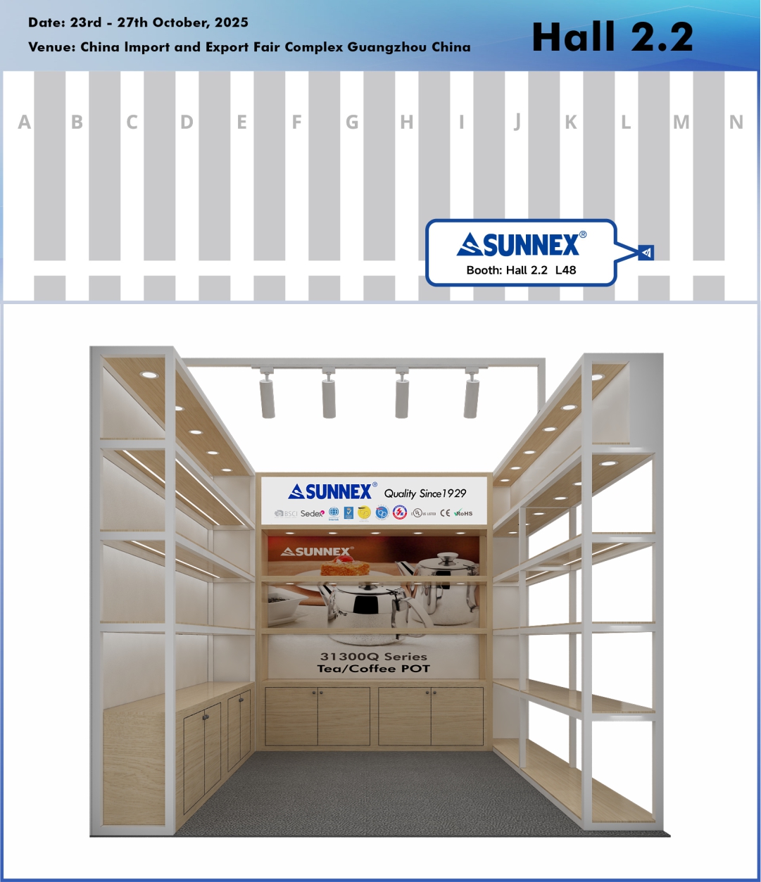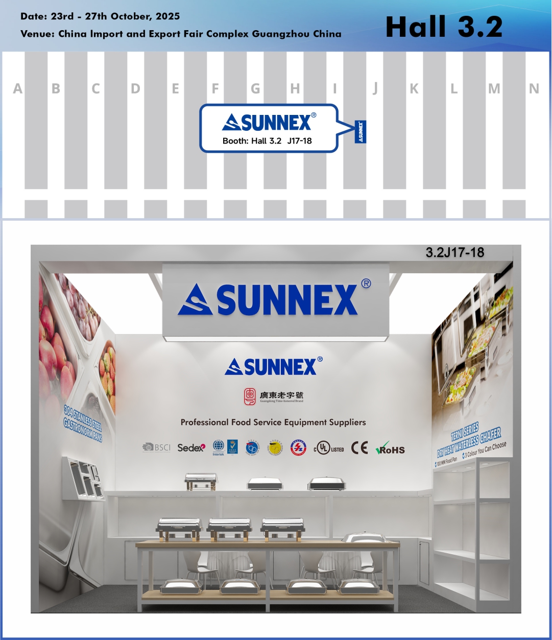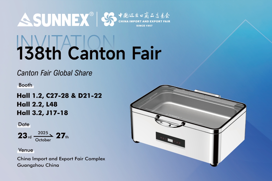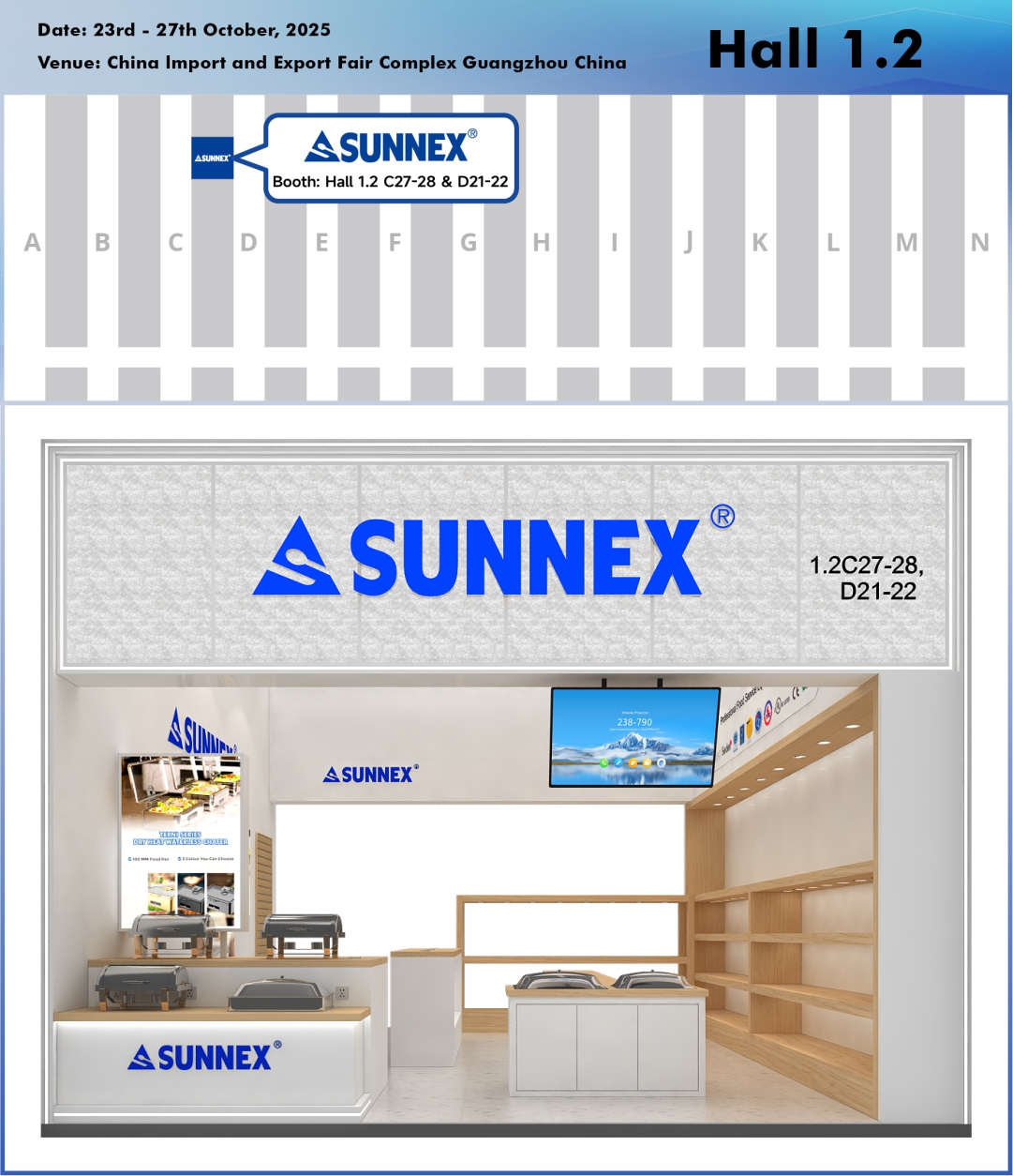 Guangzhou, Sina - October 2025 - SUNNEX Century (Shenzhen) Ltd., princeps opificem colaphizandi mercis, atrox fercula, potus dispensatores, et venalia domestica, ementes, instrumentorum et industriarum doctorum internationales invitare consentit ad tabernas nostras ad 138 Sinas Import et exportare Fair (Canton Fair).