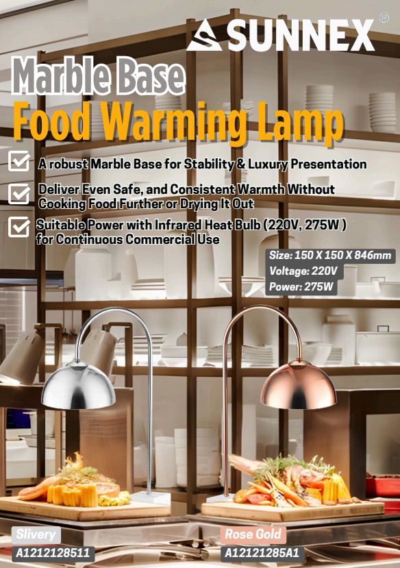 Apta Potestas cum Bulla infrared Caloris (220V, 275W) pro Usu Commerciali Continuo.